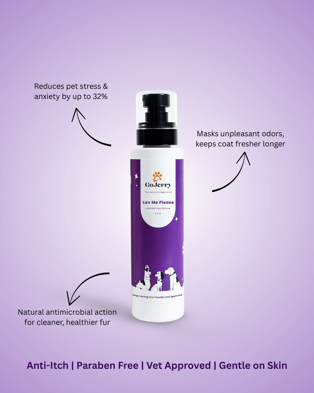Lav Me Please is a gentle and soothing lavender-inspired perfume crafted to keep your dog smelling fresh, calm, and lovable. Infused with the relaxing essence of lavender, this fragrance is perfect for pets who enjoy a touch of everyday luxury with a soft, comforting scent. Formulated with pet-safe fragrance oils and balanced alcohol content, Lav Me Please delivers a long-lasting aroma that refreshes your dog’s coat while being safe for regular use. Whether after grooming, a walk, or playtime, Lav Me Please provides instant freshness and a calming fragrance that makes every cuddle more enjoyable. Because your furry friend deserves not only style but also comfort – naturally. By GoJerry – The Style Your Doggy Wants.